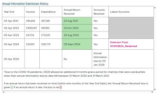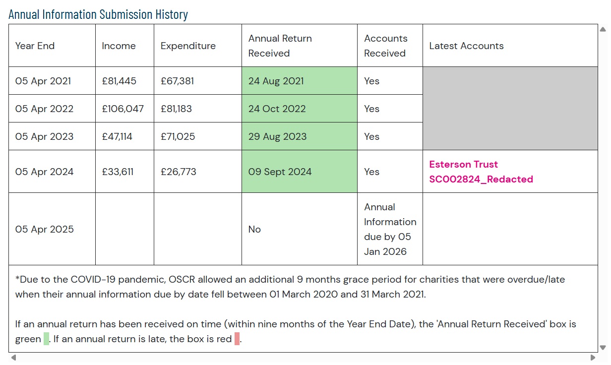 Esterson Trust financial details from the website of the OSCR, 2025.
