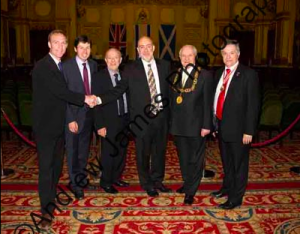 Stanley Lovatt (left) with Glasgow Jewish Representative Council president Edward Isaacs, during Stanley’s appointment as Honorary Consul of Israel in Scotland, at a ceremony held in the City Chambers, May 2011. Source