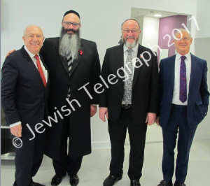 From left, Stanley Lovatt, Calderwood chaplain Rabbi Moshe Rubin, Chief Rabbi Ephraim Mirvis and GJRC immediate past president Paul Morron, 2017 Source