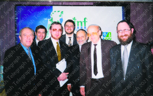 Pictured at the Judaism Modernity Conference are, from left, Stanley Lovatt, Yisroel Roll, Rabbi YY Rubinstein, Rabbi Osher Jacobs, Rabbi Berel Wein, Professor Natan Aviezer and Rabbi Michoel Fletcher, 2021 Source